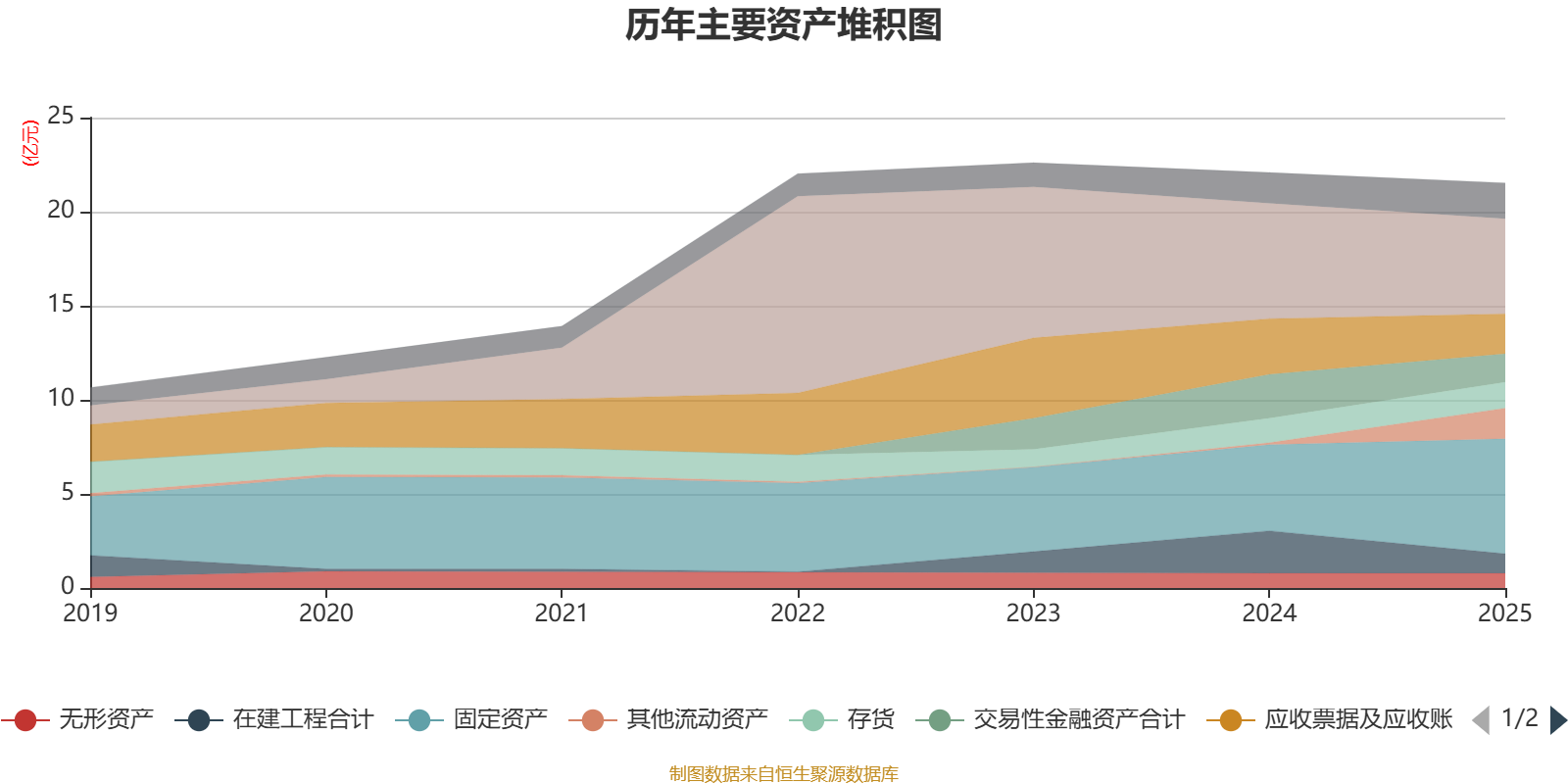 资产重大变化方面,截至2025年末,公司固定资产较上年末增加33.49%,占公司总资产比重上升7.64个百分点;其他流动资产较上年末增加1417.24%,占公司总资产比重上升7.12个百分点;在建工程合计较上年末减少53.75%,占公司总资产比重下降5.38个百分点;货币资金较上年末减少17.6%,占公司总资产比重下降4.3个百分点。