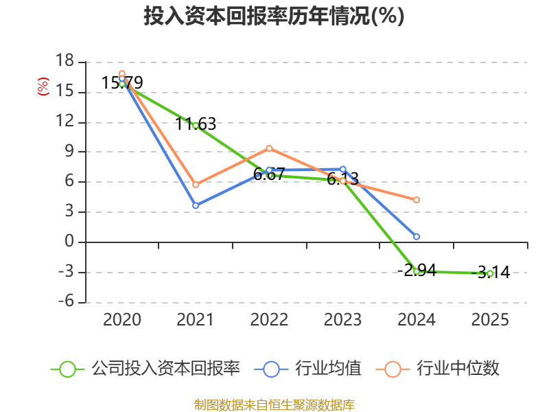 数据显示,2025年公司加权平均净资产收益率为-2.93%,较上年同期下降0.5个百分点。公司2025年投入资本回报率为-3.14%,较上年同期下降0.2个百分点。