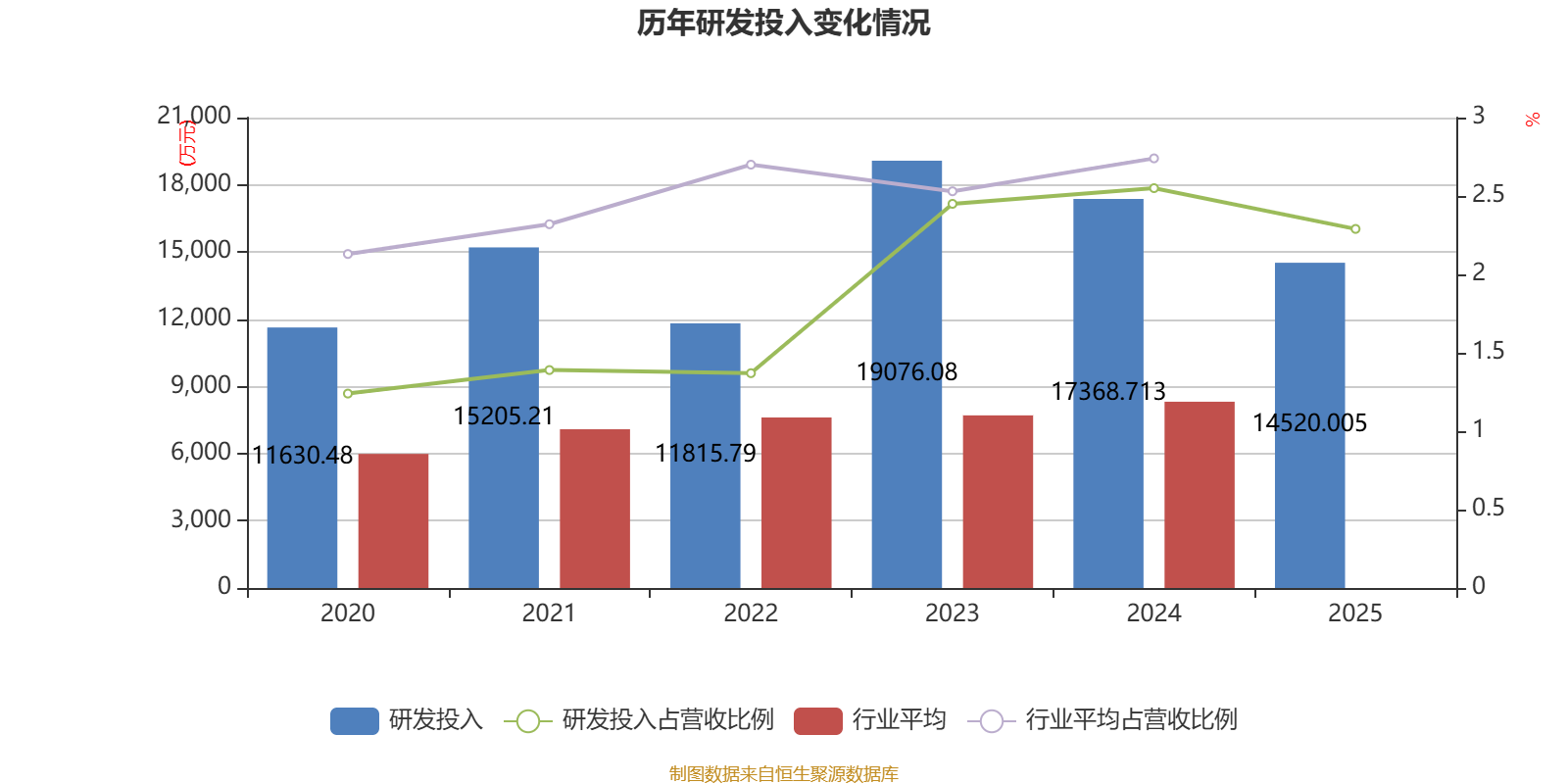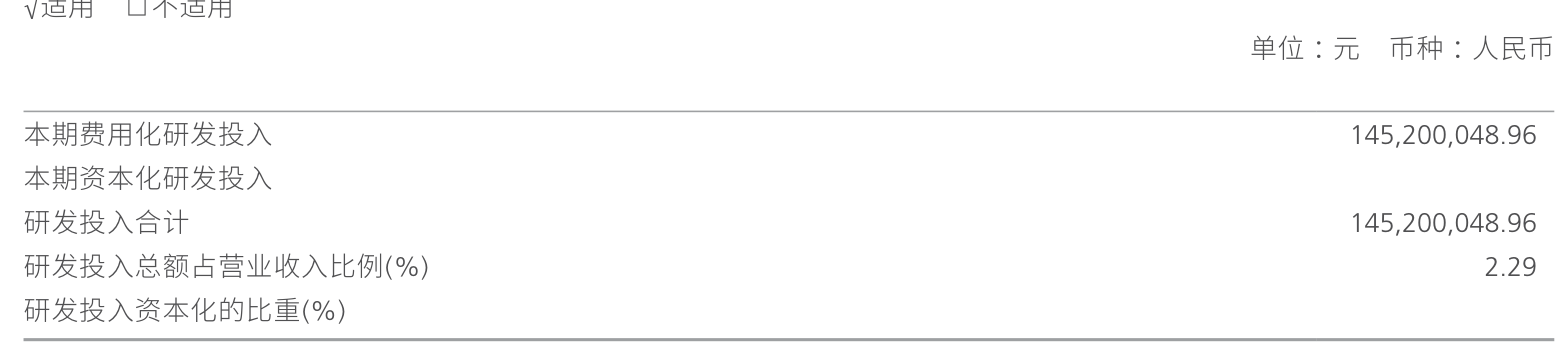 2025年全年,公司研发投入金额为1.45亿元,同比下降16.4%;研发投入占营业收入比例为2.29%,相比上年同期下降0.26个百分点。此外,公司全年研发投入资本化率为0%。