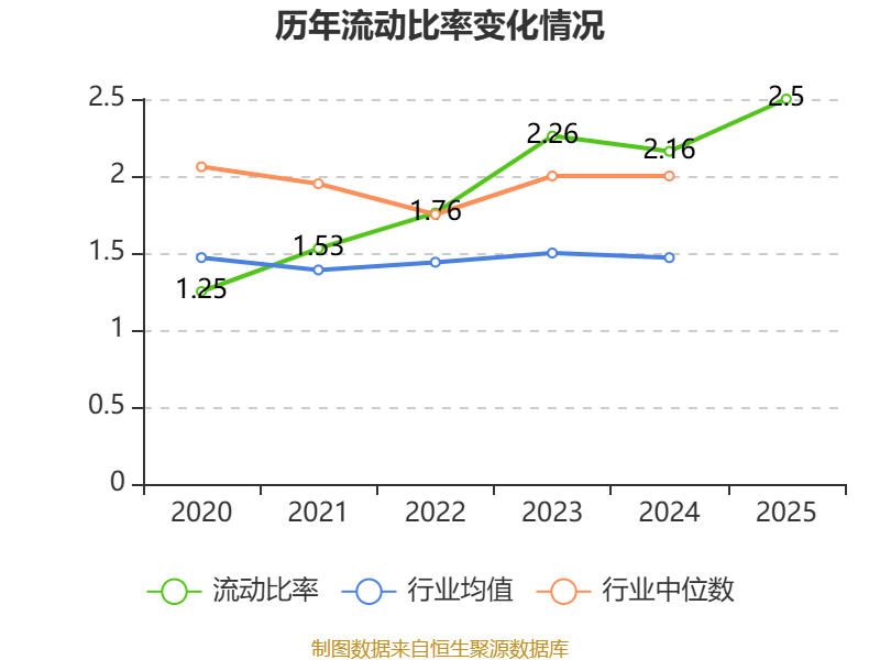 2025年,公司流动比率为2.5,速动比率为1.73。