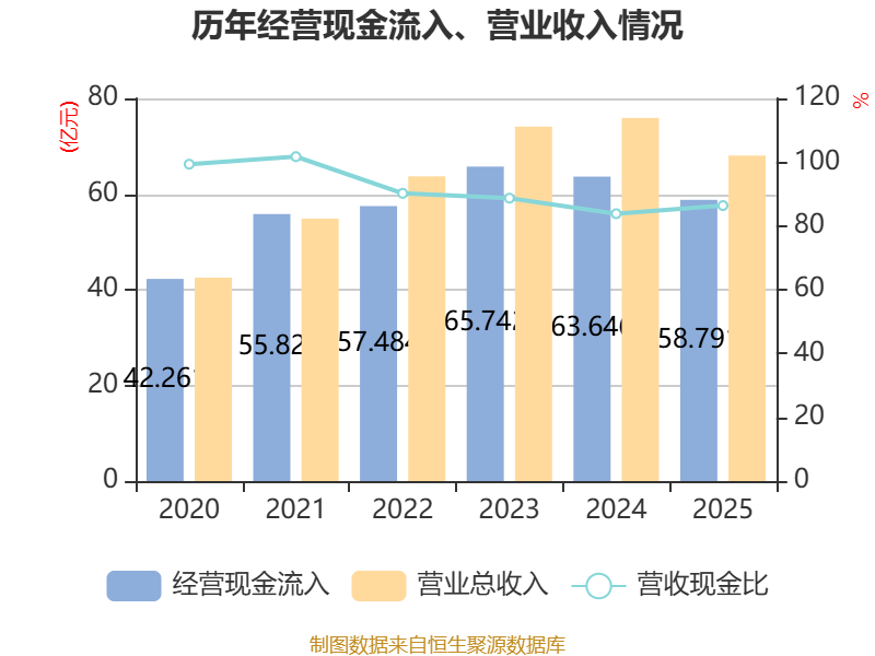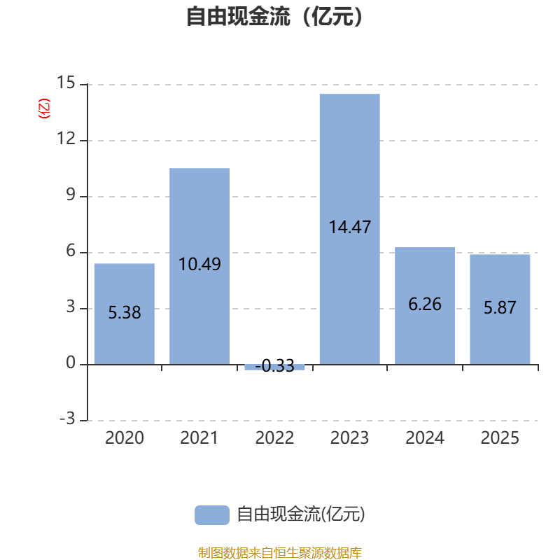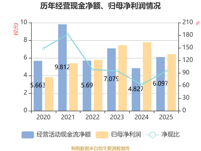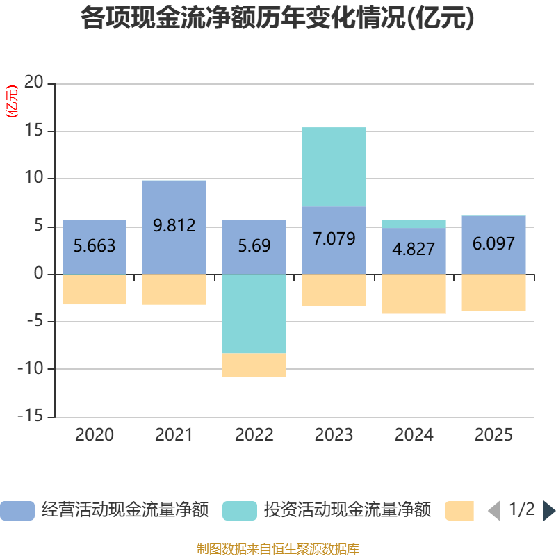 截至2025年,公司经营活动现金流净额为6.1亿元,同比增长26.31%;筹资活动现金流净额-3.9亿元,同比增加2696.23万元;投资活动现金流净额499.61万元,上年同期为8754.23万元。