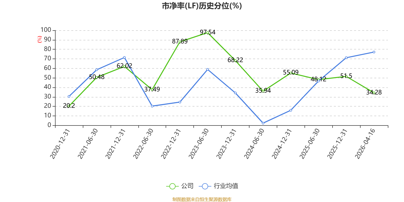 市盈率、市净率为负时,不显示当期分位数,会导致折线图中断。