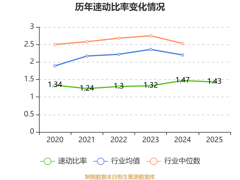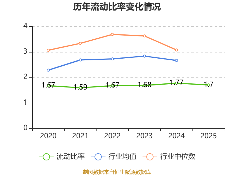 2025年,公司流动比率为1.7,速动比率为1.43。