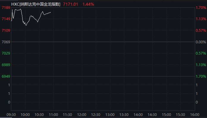 中概股表现亮眼,纳斯达克中国金龙指数一度涨1.7%,截至发稿涨幅仍有1.44%。
