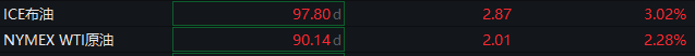 大宗商品方面,国际油价盘中拉升,截至发稿,ICE布油涨超3%,WTI原油涨超2%。