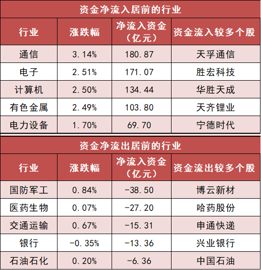 【16日资金路线图】两市主力资金净流入超120亿元 通信等行业实现净流入