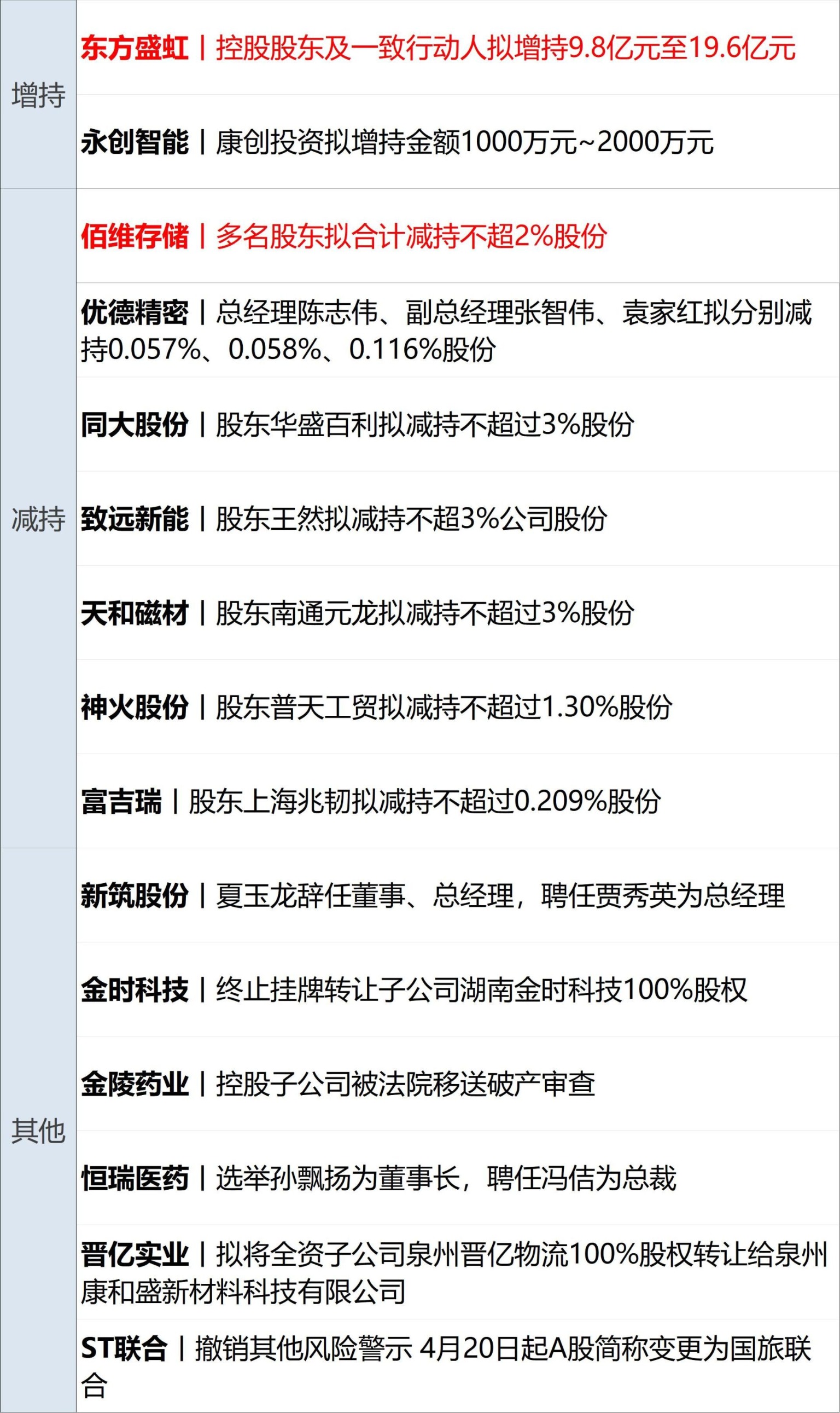 万科A(SZ000002,股价3.96元,市值472亿元):4月16日,万科A在互动易平台回应了总裁职位空缺等市场关注问题。对总裁一职的空缺,万科表示,公司总裁职位目前处于空缺状态,公司已通过董事会授权及高管分工调整,由董事长及公司高管团队分担相关职责,确保了公司经营决策的正常开展和公司治理的有效运作。