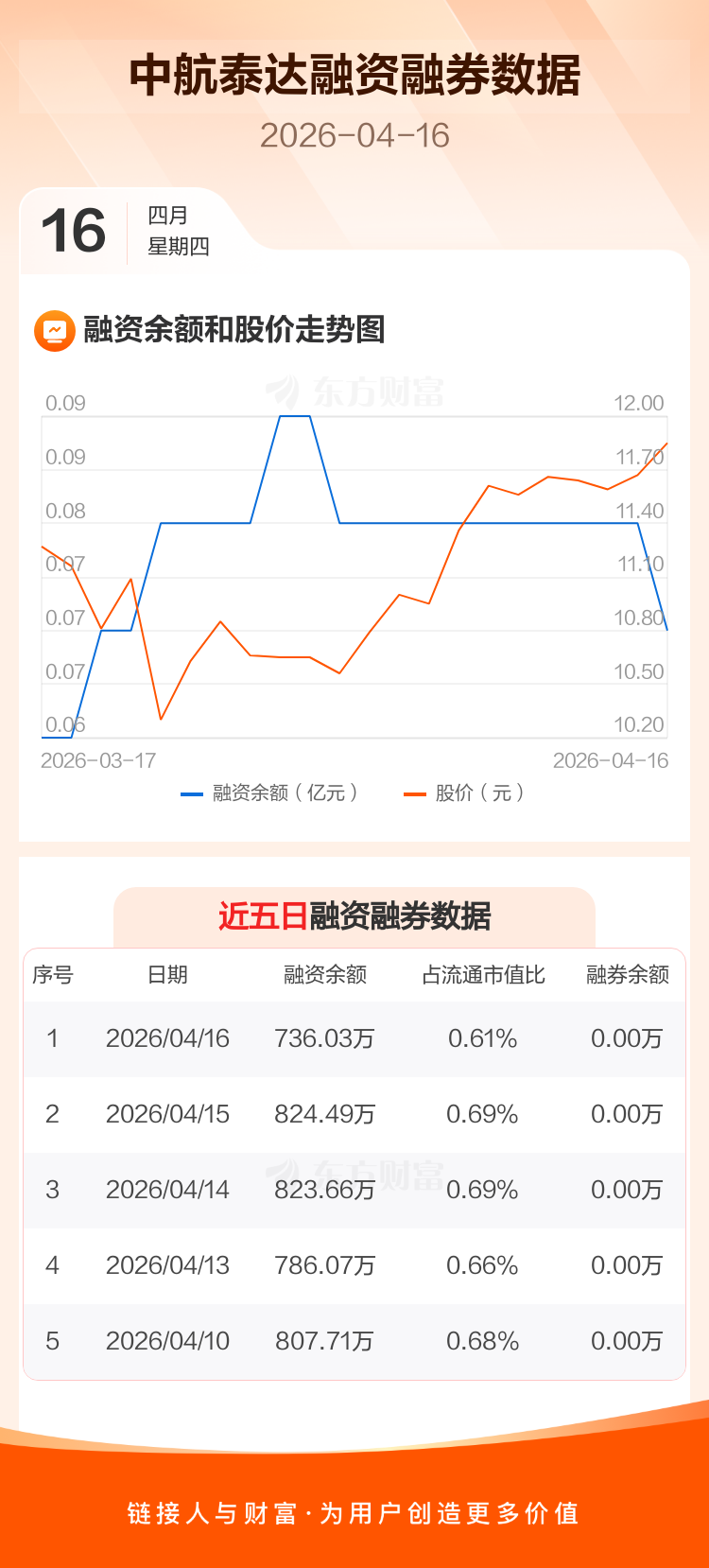 交易所最新数据显示,中航泰达于2026年4月16日获融资买入33.27万元,融资偿还121.73万元,当日融资净偿还88.46万元。目前,该股融资余额736.03万,占流通市值比例为0.61%。