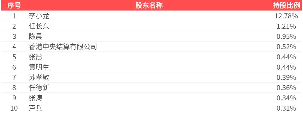 前十大股东持股数量为2.44亿股,占总股本比例为17.73%,前十大股东持股情况如下: