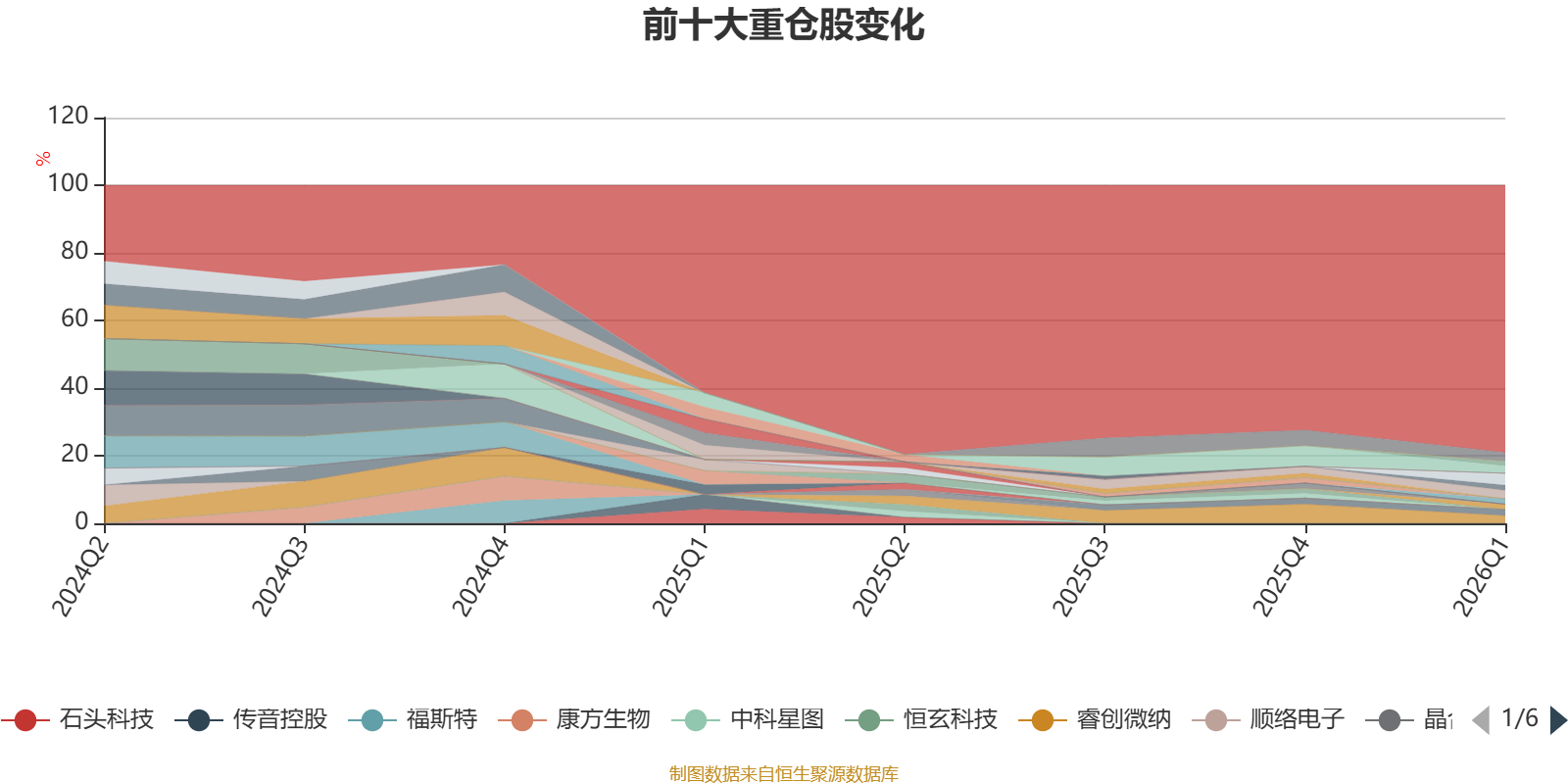 截至2026年一季度末,基金十大重仓股分别是宁德时代、中芯国际、海光信息、睿创微纳、寒武纪、腾讯控股、科拓生物、泽璟制药、厦钨新能、芯源微。