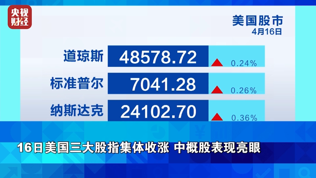 16日美国三大股指集体收涨