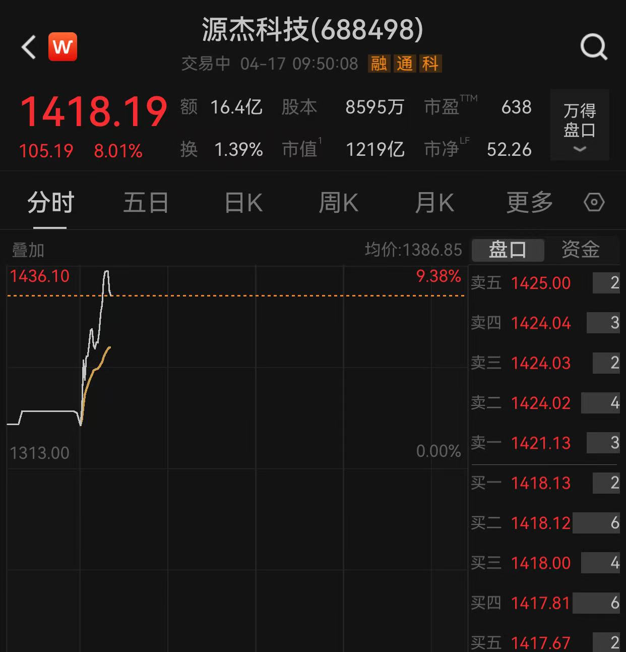 4月17日,A股股价第一股再度易主。Wind数据显示,截至9:50,源杰科技涨逾8%,股价站上1410元/股;贵州茅台在发布2025年年报后下跌,跌逾3%,股价跌破1410元/股。源杰科技股价超过贵州茅台,位居A股第一。今年以来,源杰科技累计涨逾120%。