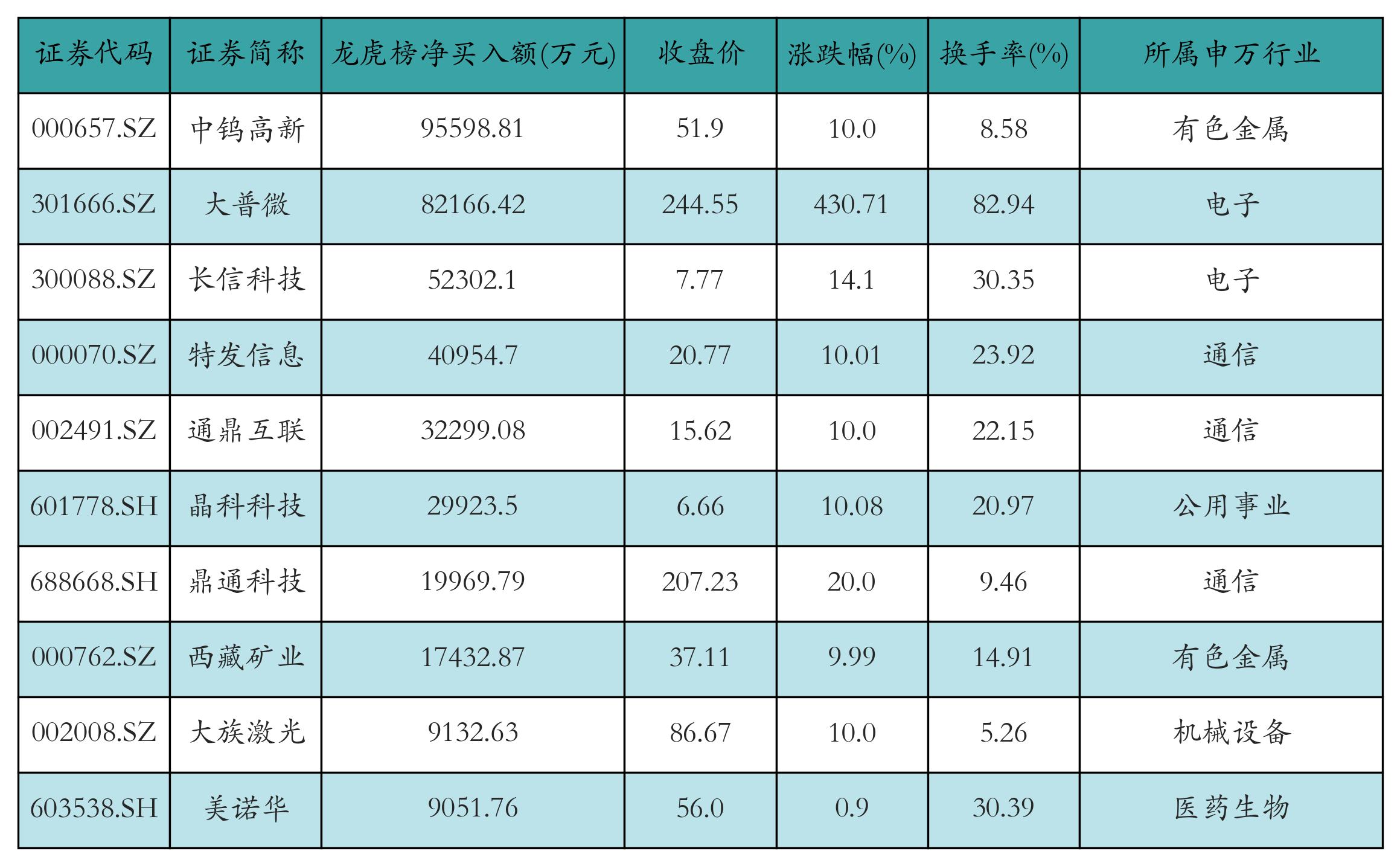 昨日龙虎榜营业部净买入额前10详情见下表: