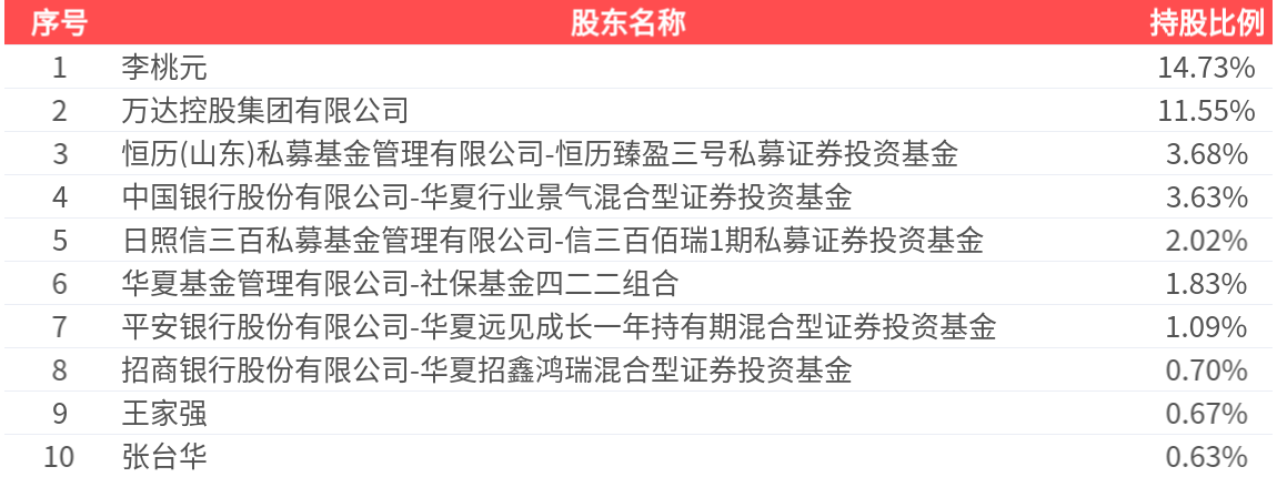 公司股东户数为1.22万户,前十大股东持股数量为7623.77万股,占总股本比例为40.55%,前十大股东持股情况如下: