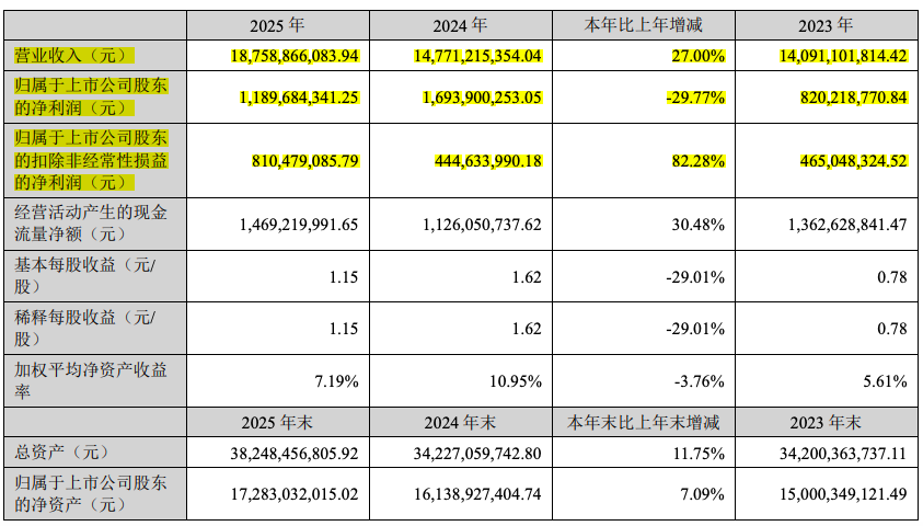 年报显示,2025年公司非经常性损益合计为3.79亿元,相较于2024年同期的12.49亿元骤降约70%。这正是导致归母净利润“失速”的直接原因。