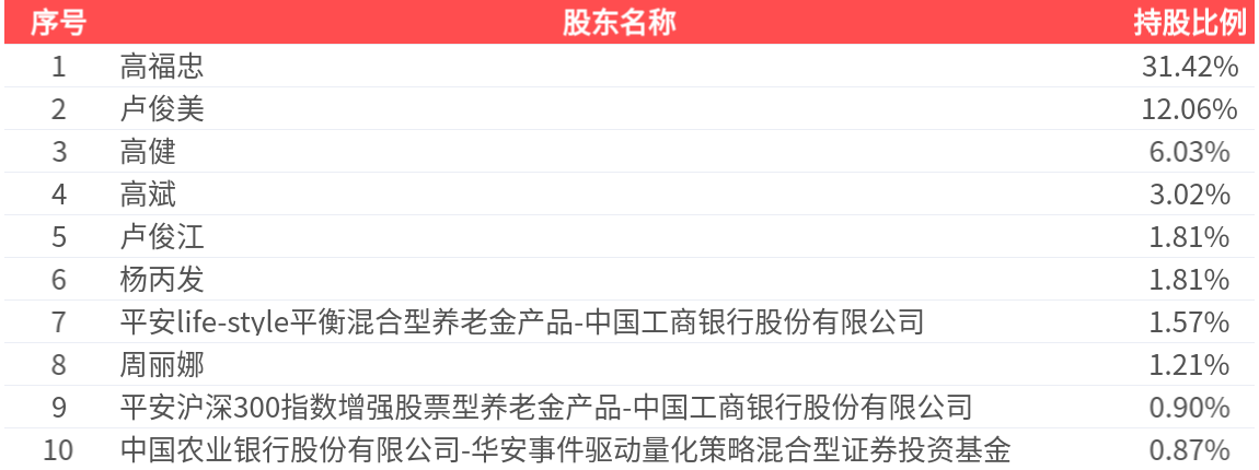 公司股东户数为1.50万户,前十大股东持股数量为1.12亿股,占总股本比例为60.69%,前十大股东持股情况如下: