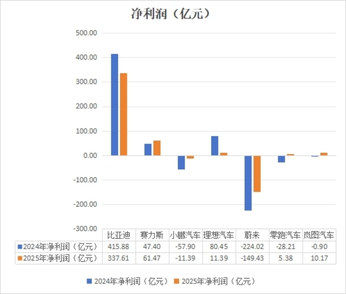 相比之下,零跑汽车与岚图汽车虽在七家企业中营收规模较小,但营收及净利润增速表现亮眼,且均于2025年首次实现盈利。