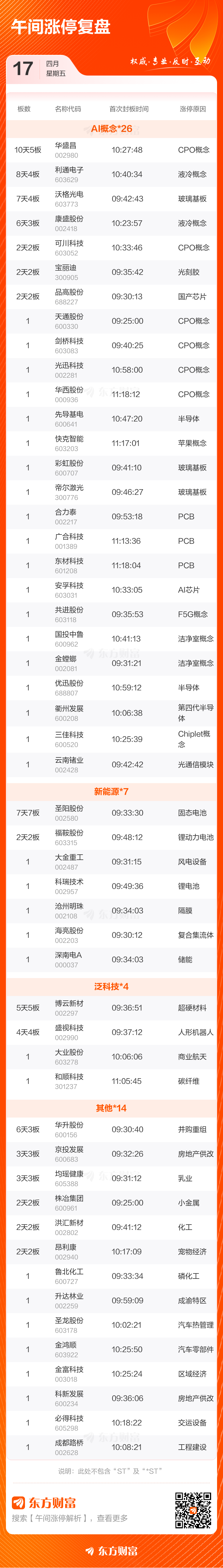 4月17日午间涨停复盘:54股涨停 华盛昌10天5板