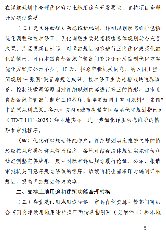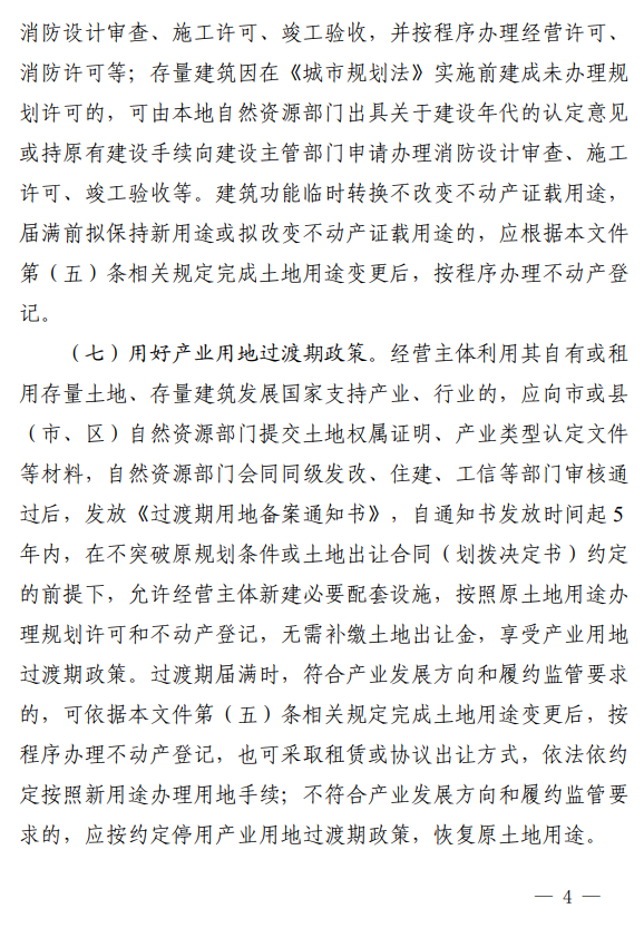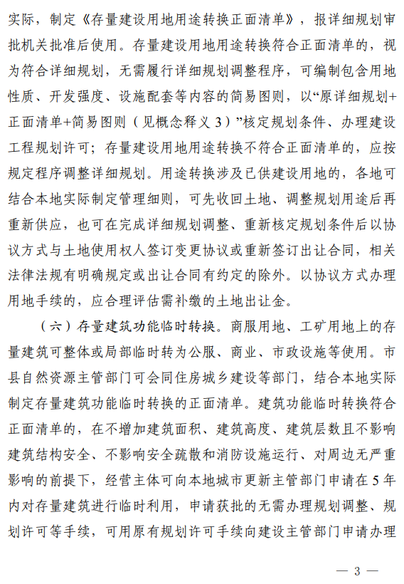 商服用地、工矿用地上的存量建筑可整体或局部临时转为公服、商业、市政设施等使用。市县自然资源主管部门可会同住房城乡建设等部门,结合本地实际制定存量建筑功能临时转换的正面清单。