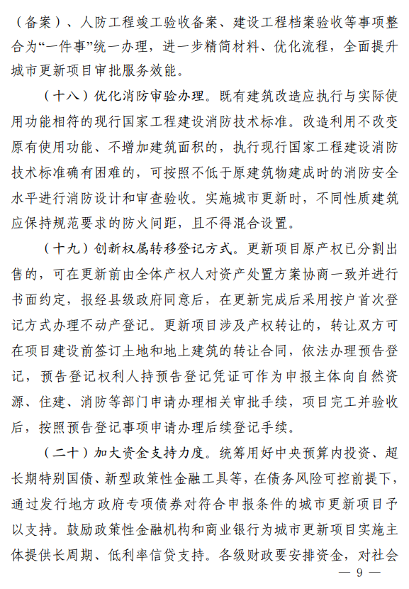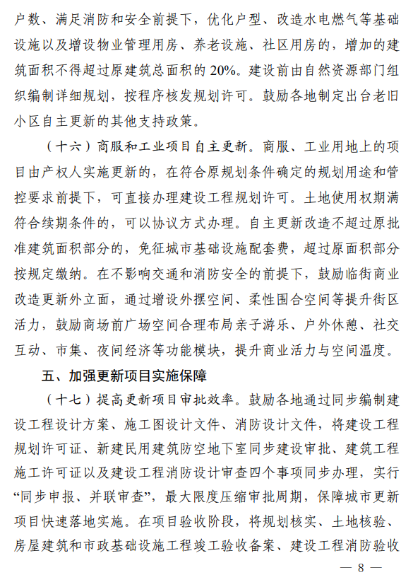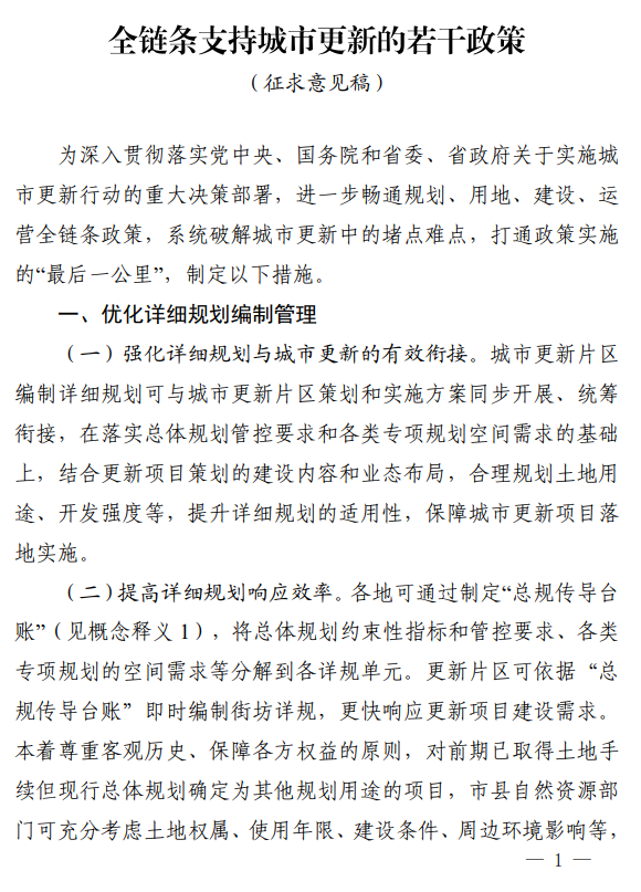 《全链条支持城市更新的若干政策(征求意见稿)》共计20项具体政策,其中提到: