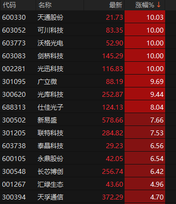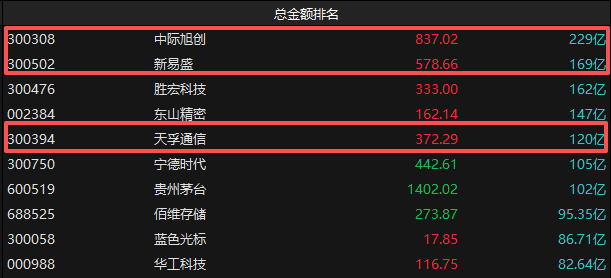 CPO概念早盘大幅领涨。沃格光电、剑桥科技、光迅科技等多股涨停;新易盛、中际旭创、天孚通信三大行业龙头涨幅在3%至7%不等,三股合计成交518亿元,占到创业板指早盘成交总额(4456亿元)的近12%。