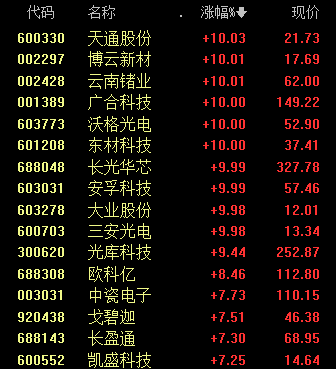 早盘,商业航天概念升温。博云新材、广合科技、东材科技等多股涨停。