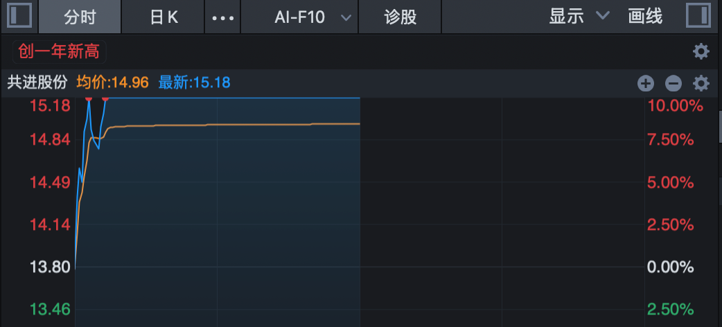 通信股继续强势上攻,通信设备方向领涨,板块指数高开高走,盘中一度放量大涨近5%,连续第4日创历史新高,4月以来多次刷新历史纪录。共进股份开盘后仅约5分钟涨停,东方通信、剑桥科技等亦强势封板。