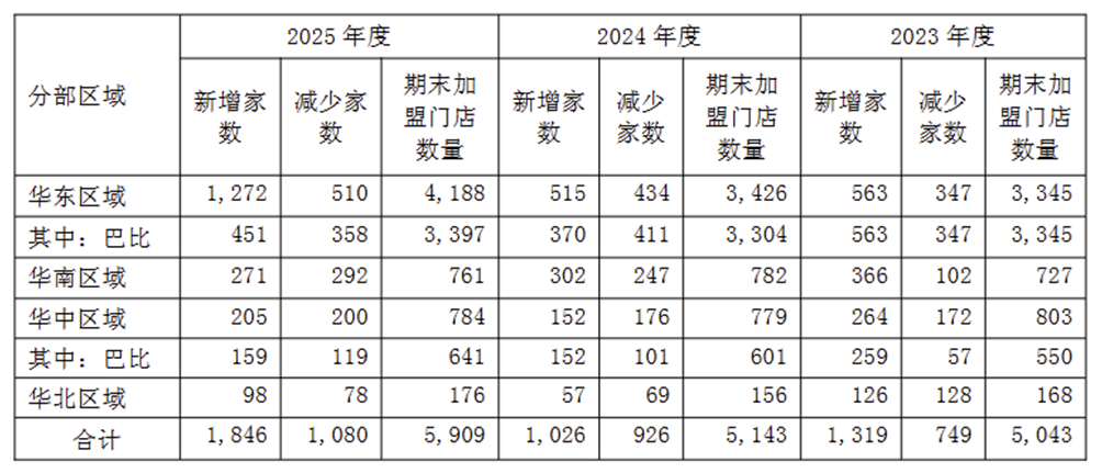 巴比食品的增长,长期依赖“门店数量扩张”这一引擎。2025年公司新增加盟门店近800家,年末总门店数达到5909家,看似全国化布局稳步推进,实则存在“重开店、轻运营”的情况,规模与质量严重错配。