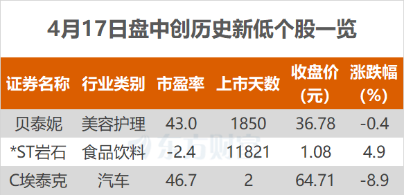 东方财富Choice数据显示,今日有3只个股盘中股价创历史新低。