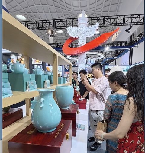 来自海南的何先生非常喜欢瓷器,得知景德镇瓷器参展,到达展会后立即就购买了两件青瓷杯,“不出岛就能买到景德镇的好物,很开心”。