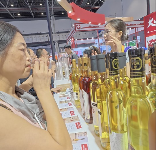 加拿大国家馆的冰酒展台,不少消费者品尝体验。新京报记者秦胜南摄