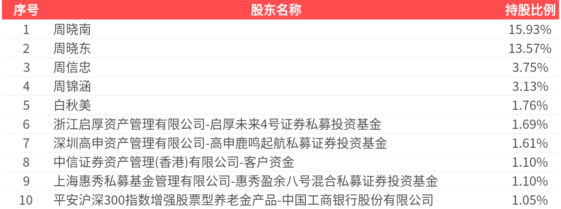 公司股东户数为1.45万户,前十大股东持股数量为1.30亿股,占总股本比例为44.68%,前十大股东持股情况如下: