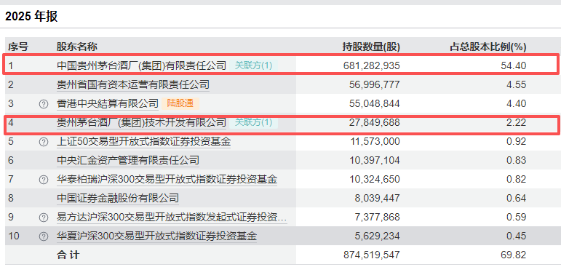 然而,从公司股东结构来看,前十大股东中,中国贵州茅台酒厂(集团)有限责任公司持股占总股本比例54.4%,贵州茅台酒厂(集团)技术开发有限公司持股占总股本比例2.22%,两者合计占比超过56%,这意味着公司半数以上的分红进入了“自己人”的口袋。