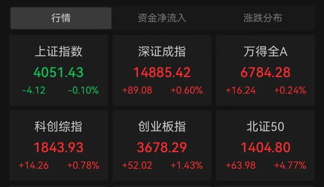 4月17日,A股三大指数涨跌不一。上证指数跌0.1%,深证成指涨0.6%,创业板指涨1.43%,科创综指涨0.78%。全市场成交额24529亿元,较上日成交额放量979亿元。