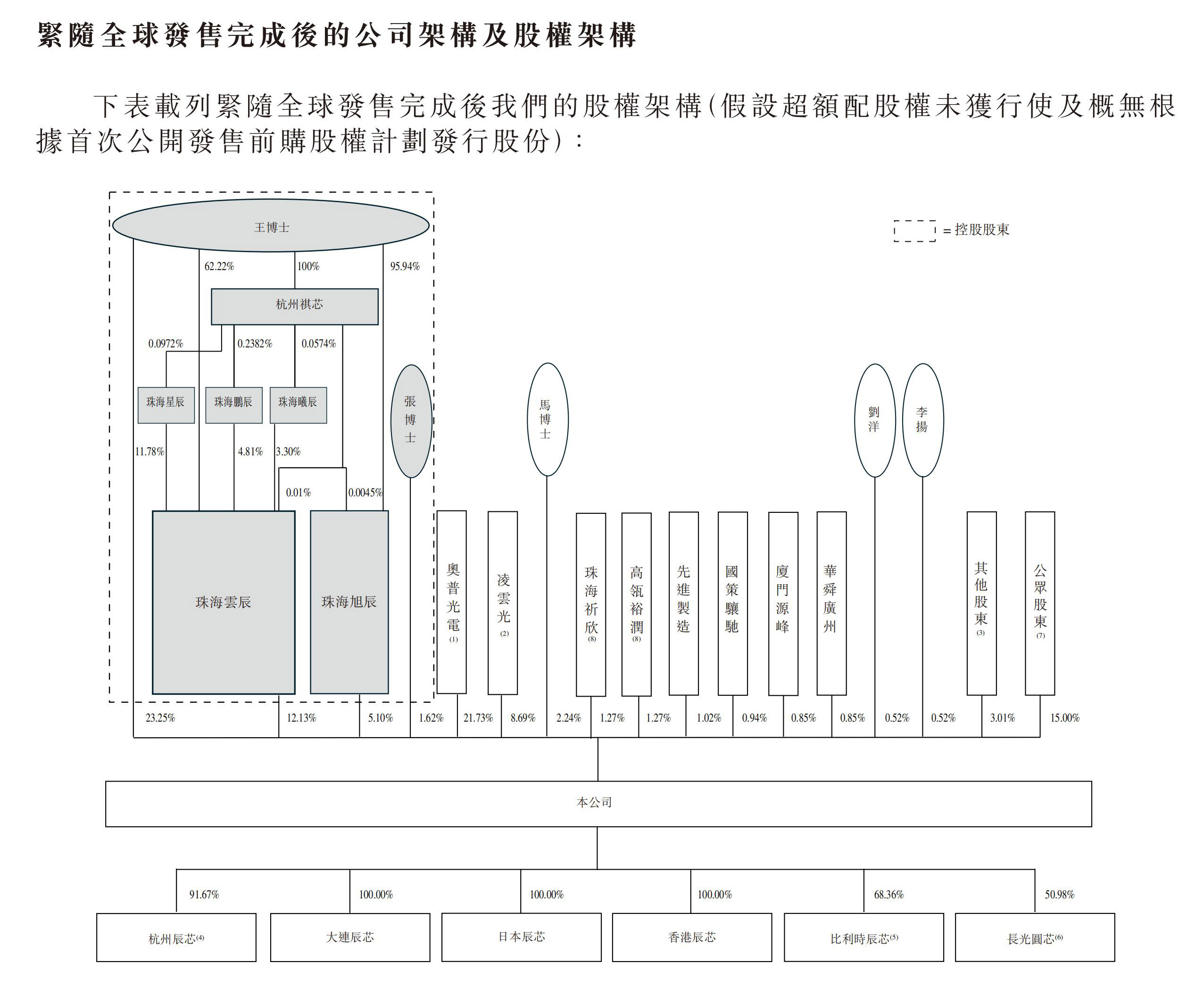 股权结构方面,IPO后公司创始人王欣洋持股23.25%,奥普光电持股21.73%,珠海云辰持股12.13%,凌云光持股8.69%,珠海旭辰持股5.10%,副总经理兼研发总监马成持股为2.24%,副总经理、董事会秘书张艳霞持股为1.62%。投资机构珠海祈欣、高瓴裕润分别持股1.27%。