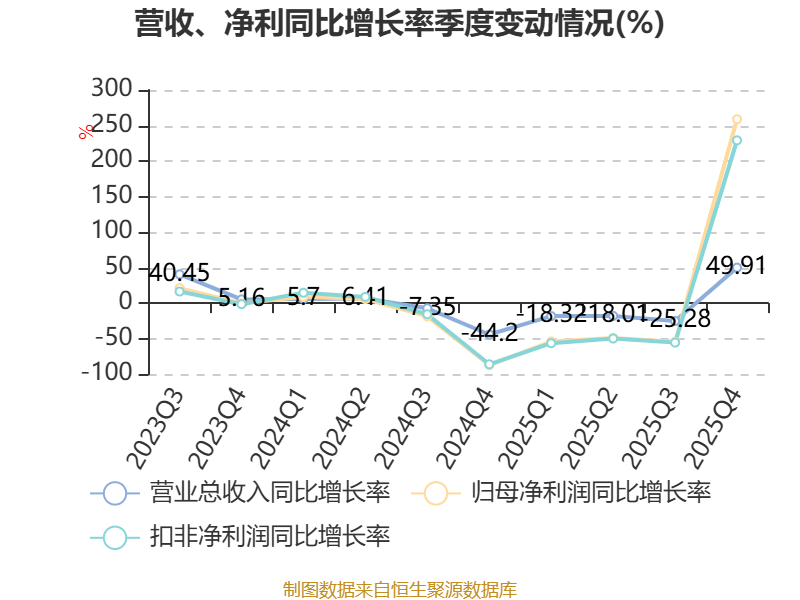 负债重大变化方面,截至2025年末,公司应付票据及应付账款较上年末增加144.11%,占公司总资产比重上升7.43个百分点;长期借款较上年末增加200.55%,占公司总资产比重上升6.68个百分点;合同负债较上年末增加370.37%,占公司总资产比重上升1.13个百分点;一年内到期的非流动负债较上年末增加478.76%,占公司总资产比重上升0.9个百分点。