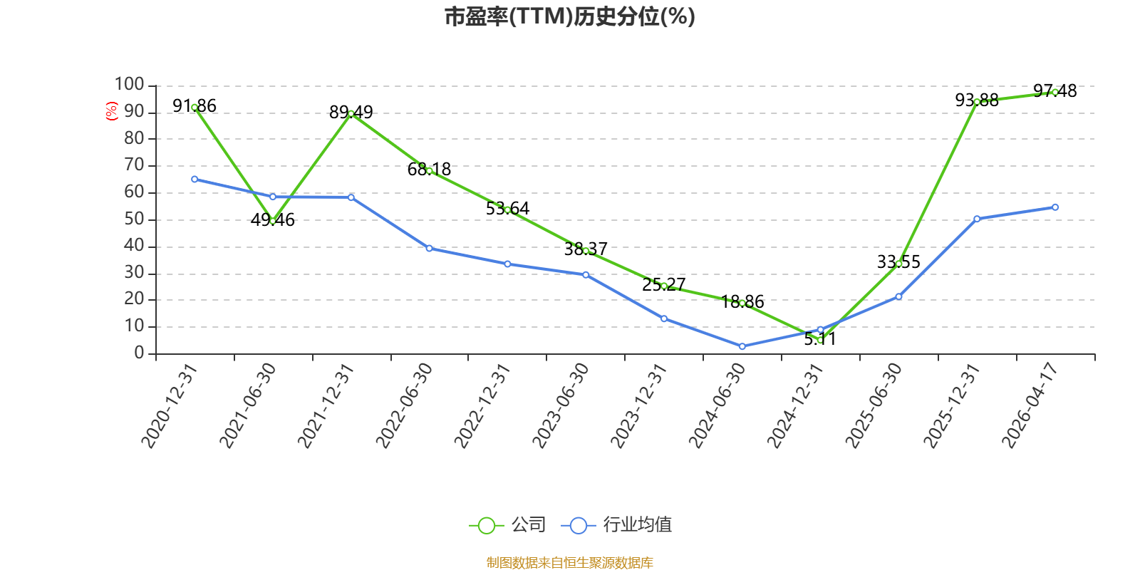 以4月17日收盘价计算,图南股份目前市盈率(TTM)约为116.5倍,市净率(LF)约9.01倍,市销率(TTM)约16.07倍。