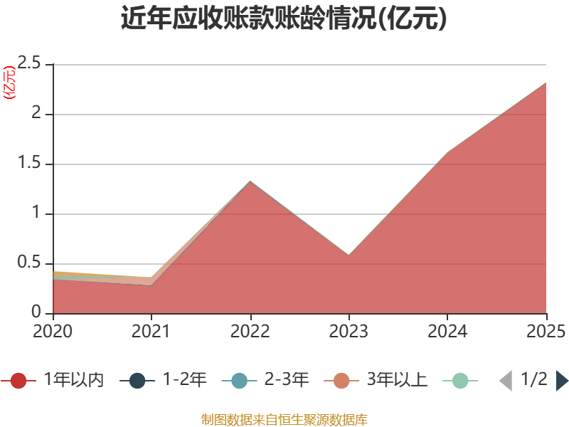 从应收账款账龄结构来看,截至2025年末,公司账龄在1年以内的应收账款余额为2.31亿元,较上年末增长6978.02万元,占应收账款总额比例为99.68%,较上年末下降0.03个百分点。
