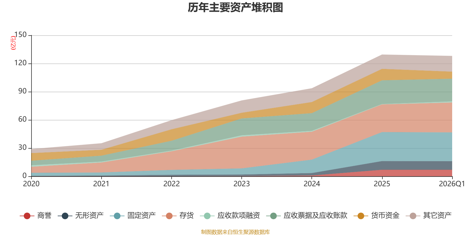资产重大变化方面,截至2026年一季度末,公司货币资金较上年末减少38.88%,占公司总资产比重下降3.61个百分点;存货较上年末增加7.76%,占公司总资产比重上升2.05个百分点;应收款项融资较上年末增加261.91%,占公司总资产比重上升0.65个百分点;应收票据及应收账款较上年末减少4.31%,占公司总资产比重下降0.63个百分点。