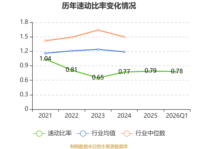 2026年第一季度,公司流动比率为1.38,速动比率为0.78。