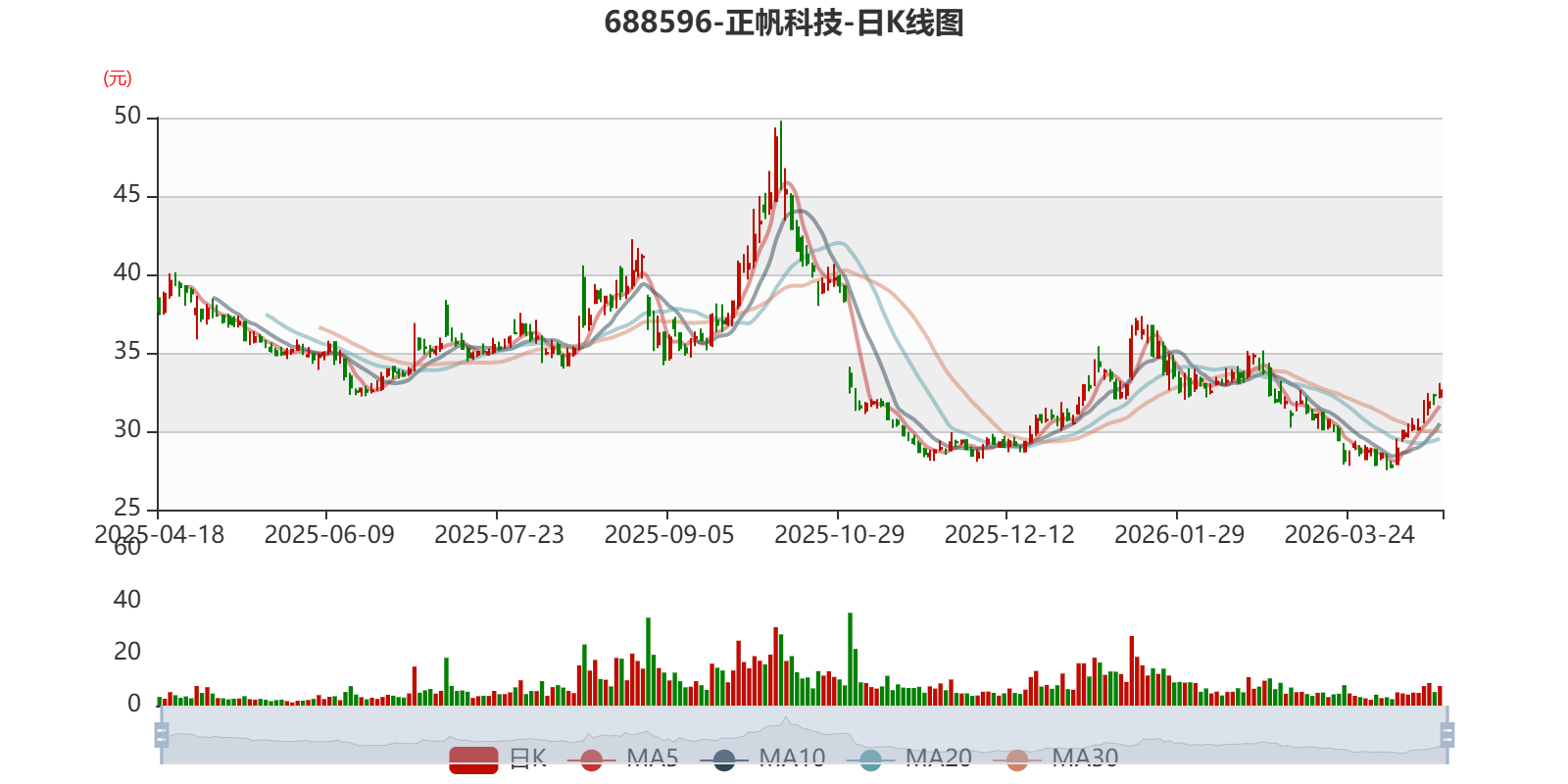 中证智能财讯正帆科技(688596)4月18日披露2026年第一季度报告。公司实现营业总收入9.7亿元,同比增长43.35%;归母净利润亏损2559.66万元,上年同期盈利3442.3万元;扣非净利润亏损3984.33万元,上年同期盈利2463.45万元;经营活动产生的现金流量净额为-1.3亿元,上年同期为-9874.38万元;报告期内,正帆科技基本每股收益为-0.09元,加权平均净资产收益率为-0.68%。