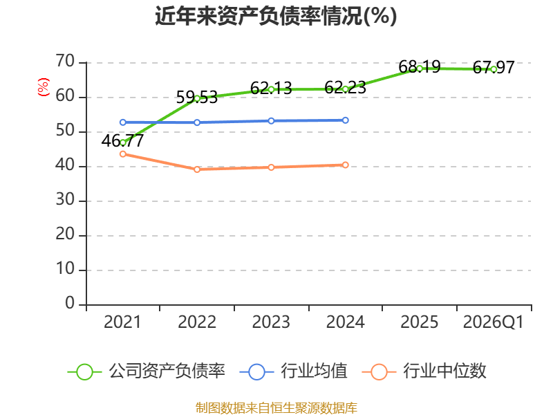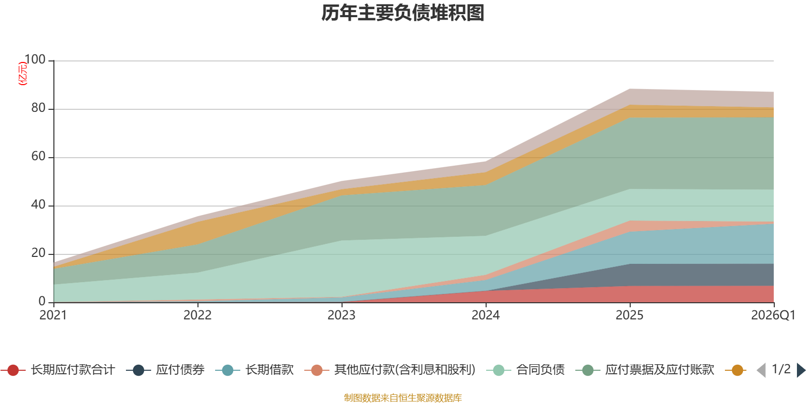负债重大变化方面,截至2026年一季度末,公司其他应付款(含利息和股利)较上年末减少80.66%,占公司总资产比重下降2.85个百分点;长期借款较上年末增加23.9%,占公司总资产比重上升2.61个百分点;短期借款较上年末减少22.9%,占公司总资产比重下降0.9个百分点;应付票据及应付账款较上年末增加1.13%,占公司总资产比重上升0.52个百分点。