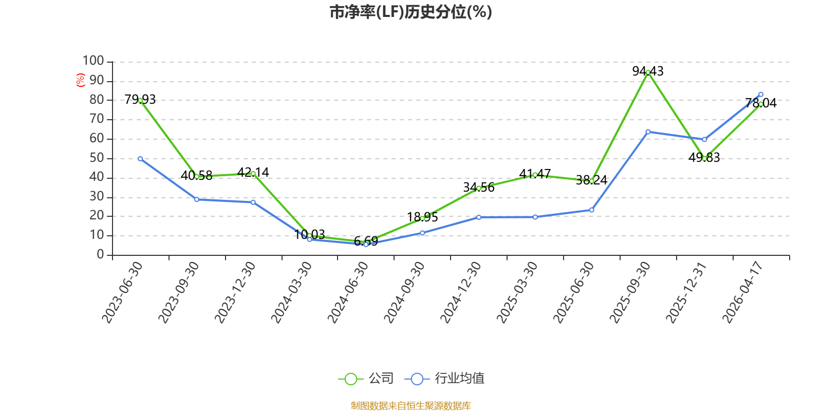 市盈率、市净率为负时,不显示当期分位数,会导致折线图中断。