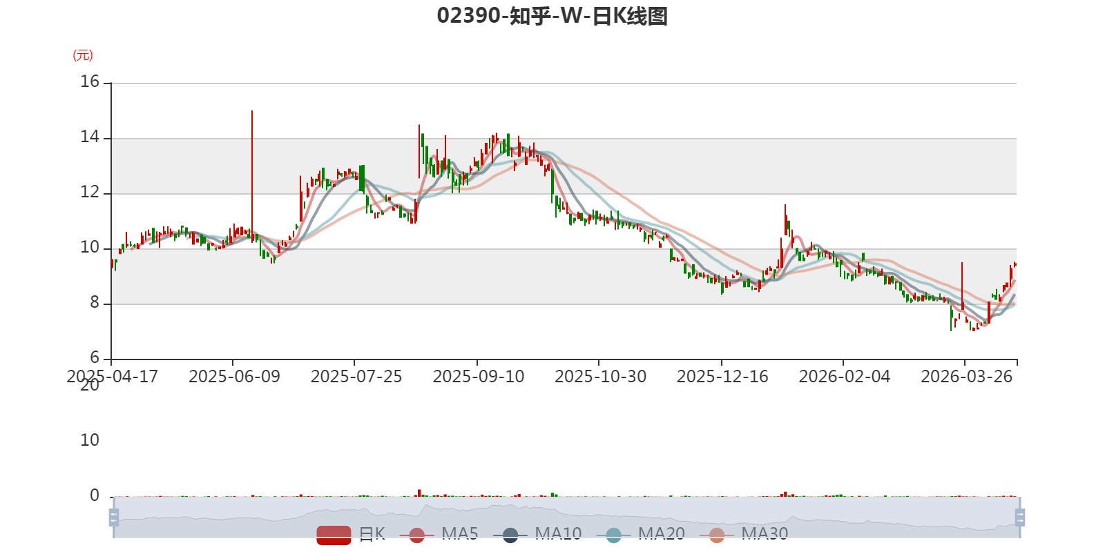 以4月17日收盘价计算,知乎-W目前市净率(TTM)约0.59倍,市销率(TTM)约0.82倍。