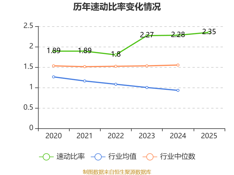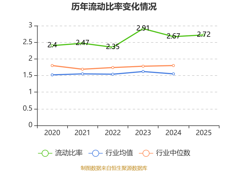 2025年,公司流动比率为2.72,速动比率为2.35。