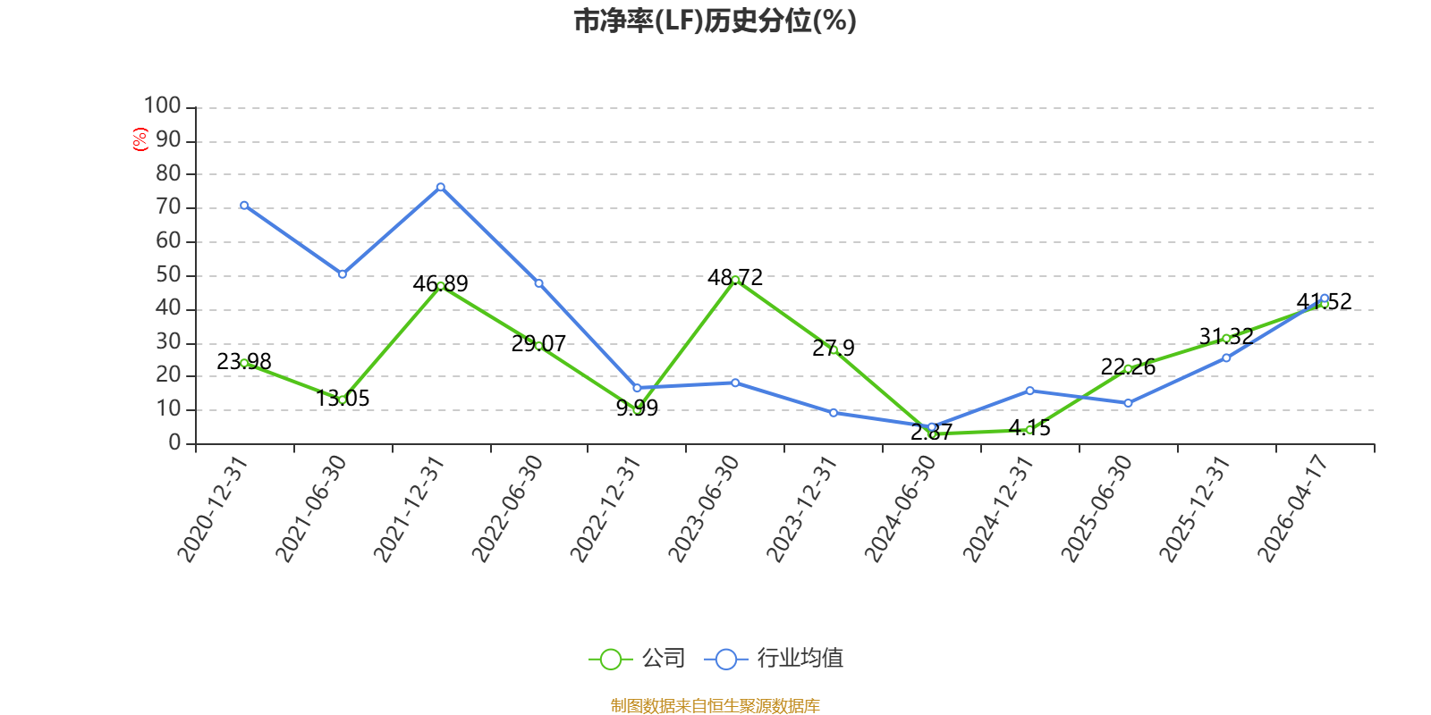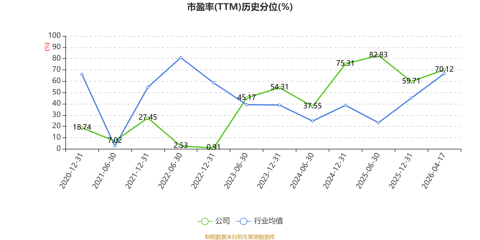 市盈率、市净率为负时,不显示当期分位数,会导致折线图中断。