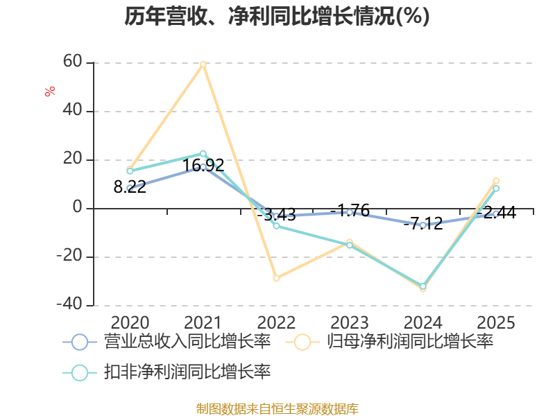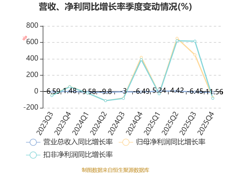 资产重大变化方面,截至2025年末,公司交易性金融资产合计较上年末增加122.86%,占公司总资产比重上升5.37个百分点;货币资金较上年末减少15.9%,占公司总资产比重下降3.12个百分点;其他流动资产较上年末增加59.53%,占公司总资产比重上升1.88个百分点;应收款项融资较上年末减少8.37%,占公司总资产比重下降1.04个百分点。