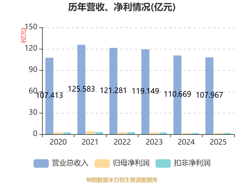 中证智能财讯众业达(002441)4月18日披露2025年年度报告。2025年,公司实现营业总收入107.97亿元,同比下降2.44%;归母净利润1.88亿元,同比增长11.25%;扣非净利润1.8亿元,同比增长8.06%;经营活动产生的现金流量净额为4.94亿元,同比下降30.17%;报告期内,众业达基本每股收益为0.35元,加权平均净资产收益率为4.12%。公司2025年度分配预案为:拟向全体股东每10股派现3元(含税)。