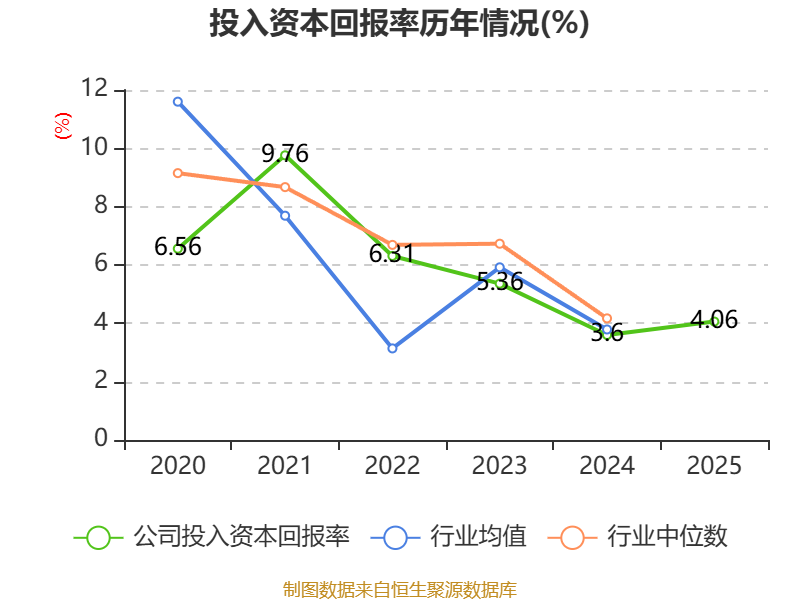 数据显示,2025年公司加权平均净资产收益率为4.12%,较上年同期上升0.41个百分点。公司2025年投入资本回报率为4.06%,较上年同期上升0.46个百分点。