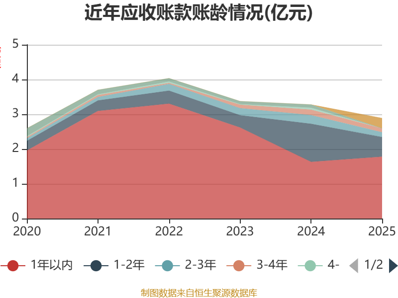 从应收账款账龄结构来看,截至2025年末,公司账龄在1年以内的应收账款余额为1.78亿元,较上年末增长1499.73万元,占应收账款总额比例为61.62%,较上年末上升11.9个百分点。